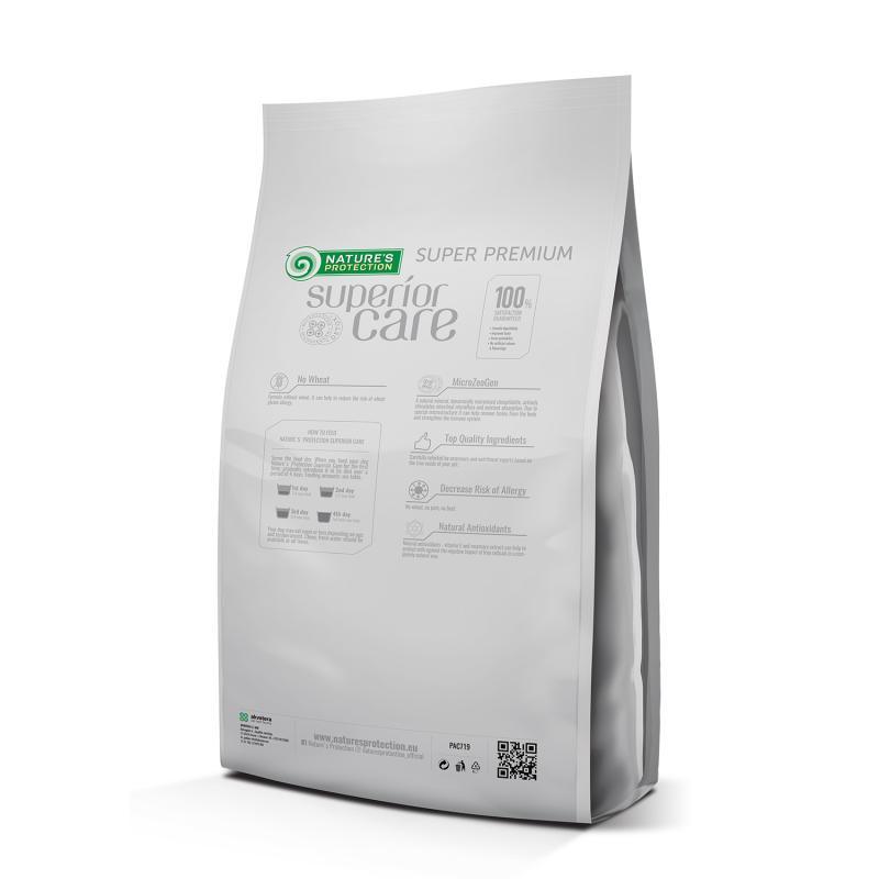 NATURE’S PROTECTION Superior Care – La linea di alimenti secchi per cani Super Premium è nota per gli ingredienti innovativi e le tecnologie più recenti nella nutrizione sana degli animali domestici. Questo alimento completo per cani contiene solo ingredienti e fonti proteiche di altissima qualità.