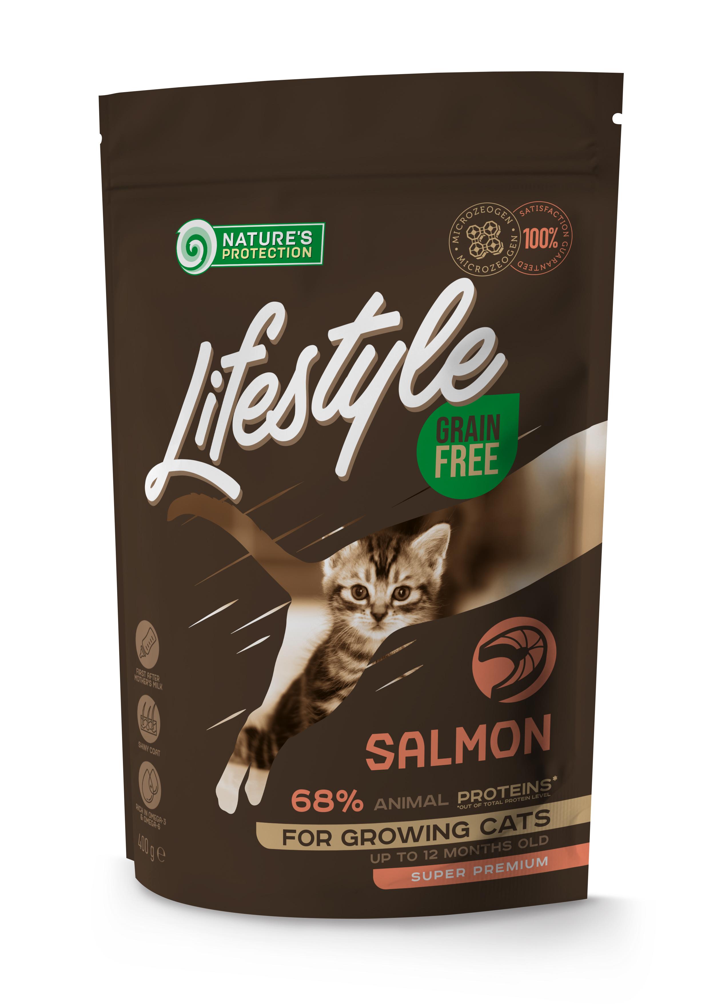 Nature’s Protection Lifestyle Grain Free con Salmone per Gattini è noto per la sua composizione ben bilanciata e per le materie prime di alta qualità, che aiutano a garantire lo sviluppo sano della struttura ossea dei gattini e forniscono il livello ottimale di energia per le gatte in gravidanza e in allattamento. La principale fonte di proteine di questo alimento secco completo per gatti è il salmone, che è facilmente digeribile, ricco di acidi grassi omega-3 e considerato una fonte di proteine ipoallergenica. La composizione completa e bilanciata di questo alimento secco per gatti è arricchita con MicroZeoGen, una clinoptilolite di origine vulcanica che aiuta a rimuovere le tossine dal corpo dell’animale domestico, consentendo un efficiente assorbimento di nutrienti, vitamine e minerali. La composizione è anche arricchita con acidi grassi Omega-3 e Omega-6 per rafforzare il sistema immunitario, mantenere una corretta funzione cerebrale e cardiovascolare e ridurre i processi infiammatori. Poiché la composizione non contiene alcun ingrediente cerealicolo, può aiutare a ridurre il rischio di allergie nei gatti con un sistema digestivo sensibile.