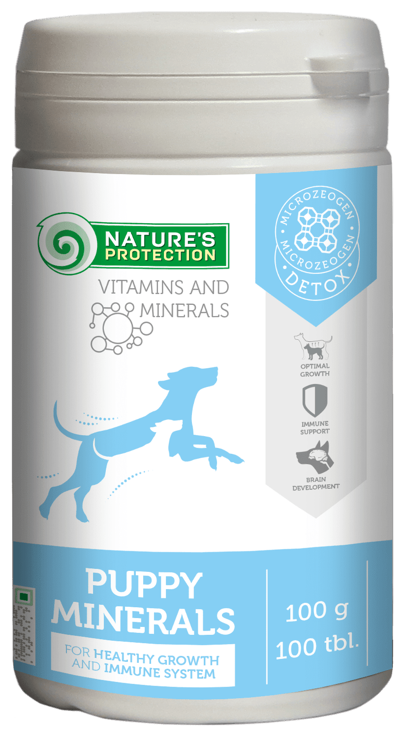 Nature’s Protection Puppy Minerals is a specially formulated mineral feed supplement that provides essential minerals for growing puppies. This mineral feed supplement is made with high-quality ingredients that support the development of healthy bones, muscles, and organs. This specially designed mineral feed is enriched with clinoptilolite of volcanic origin from nature – Microzeogen. The unique structure of the mineral allows it to attract and trap positively charged ions, such as heavy metals and toxins, while allowing other beneficial ions to pass through. It acts as an antioxidant and removes toxins, heavy metals, and viruses from the pet’s body, when it is detoxified the body is cleaned and ready to absorb the antioxidants, vitamins and minerals into the body. The composition also contains Calcium, which is important for strong bones and teeth, as well as phosphorus – for energy metabolism and healthy cell function. It also contains Magnesium, which supports muscle and nerve function, and Zinc, which is important for immune system health and healthy skin and coat. The mineral Nature’s Protection Puppy Minerals feed supplement is a convenient and effective option to ensure your puppy gets the minerals they need for healthy growth and development.
